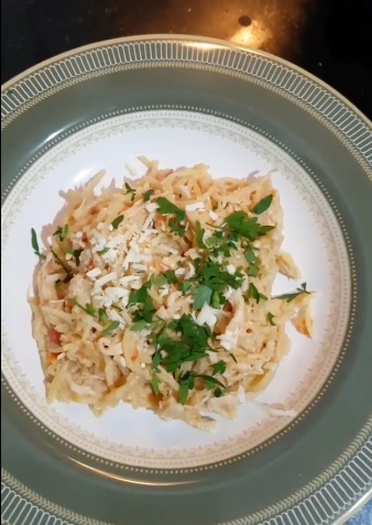 Receitas >   Macarrão "à carbonara" com Frango Desfiado